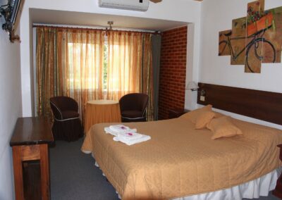 En HosterÃa Anchimalen cada habitación está pensada para brindarte el descanso que merecés durante tus vacaciones en Villa Gesell. Con un estilo sencillo y cálido, ofrecemos espacios luminosos, equipados con baño privado, aire acondicionado, TV y armario.